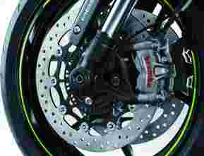 브레이크전륜: Dual semi-floating 310 mm Brembo disc. Caliper: Dual radial-mount, Brembo M50 monobloc, opposed 4-piston