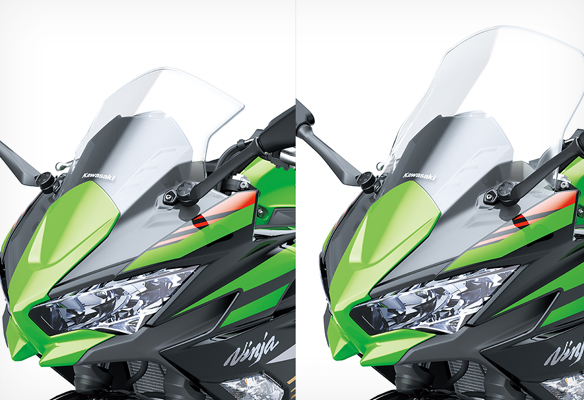 Ninja 650의 샤프하고 새로운 스타일링으로 스포티한 외관과 더 강한 Ninja 패밀리 룩을 선사합니다. 세련되고 스포티한 디자인은 라이더의 자신감을 불러일으킵니다. 어퍼 카울은 폭이 넓고, 더 뚜렷한 경사로 인해 더 강력한 슈퍼 스포츠룩에 기여합니다. 스포티한 외관을 우선시하여, 새롭게 디자인된 윈드실드는 더 낮아져 어퍼 카울과 플러시-핏(flush-fit)됩니다. 라이더에게 적절한 방풍 기능을 제공하기 위해 보다 직립된 각도로 설정되었습니다. 각각 로우 빔과 하이 빔 및 포지션 램프를 갖춘 트윈 LED 헤드라이트는휘도(밝기)를 향상시킵니다. 페어링 볼트 대신 훅이 사용되어 깨끗하고 매끄러운 표면을 만들어 고급스러움을 어필합니다.