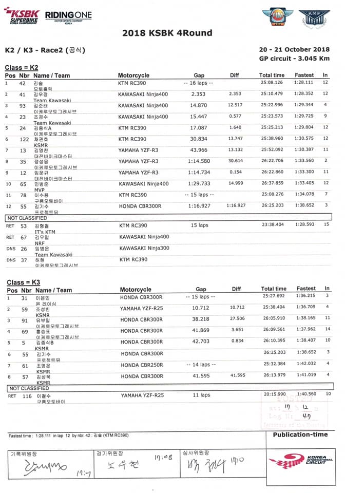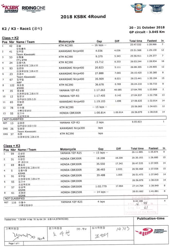 KSBK일정서킷라이더예선Race 1Race 2기록지